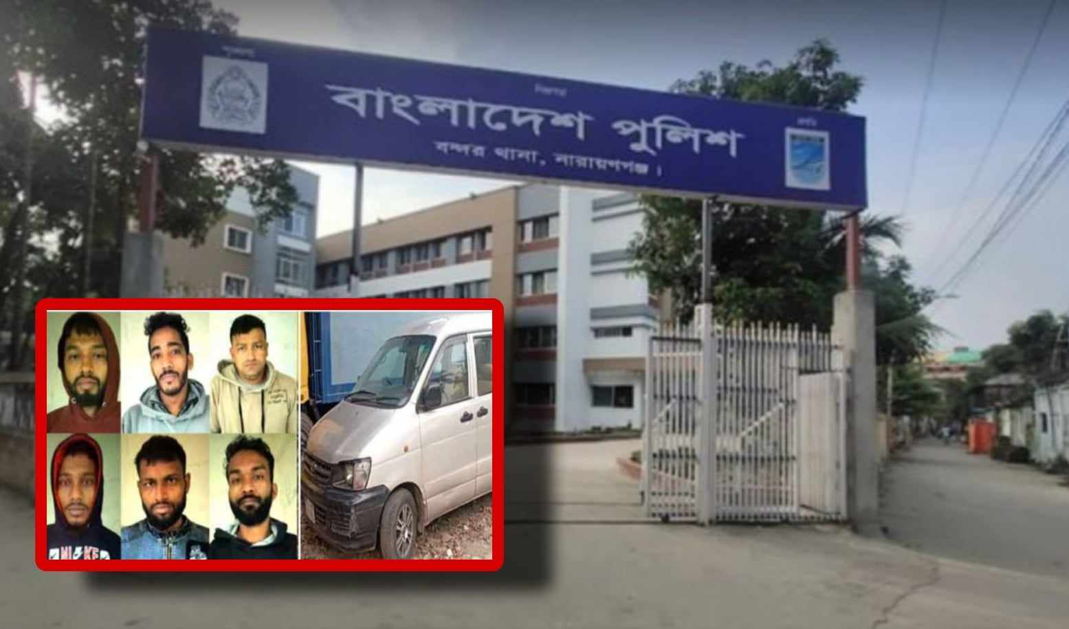 মাইক্রোবাস চালকের হাত পা বেঁধে মালামালসহ ডাকাতি করে নিয়ে যাওয়ার ঘটনায় ৬ ডাকাতকে গ্রেপ্তার করেছে বন্দর ফাঁড়ী পুলিশের একটি টিম। এ সময় অভিযানের নেতৃত্ব দেন বন্দর ফাঁড়ি পুলিশ পরিদর্শক মো. রেজাউল করিম।