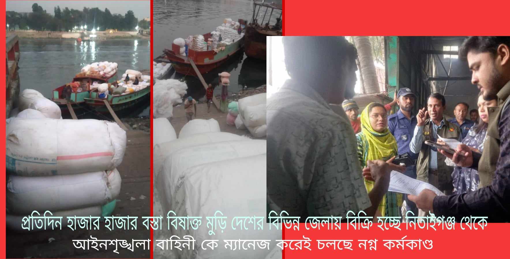 বছরের পর বছর নারায়ণগঞ্জের রূপগঞ্জ, আড়াইহাজার, সোনারগাঁ, বন্দর ও সদর উপজেলায় প্রায় ২৫/৩০ টি মুড়ি তৈরীর কারখানায় বিরামহীন পন্থায় তিতাস গ্যাসের চুরির মহোৎসব চালিয়ে বিষাক্ত হাইড্রোজ ও ইউরিয়া সার মিশিয়ে একেবারেই প্রকাশেই তৈরী হচ্ছে মুড়ি। আর মুসলিম সম্প্রদায়ের পবিত্র এই রমজান মাসকে সামনে রেখে প্রায় দুই মাস পূর্ব থেকেই এই বিষাক্ত মুড়ি তৈরী করতে প্রতিটি থানা, ডিবি পুলিশ, সিআইডির ক্যাশিয়ার কে মোটা অংকের মাসোয়ারা দিয়ে সকলকে বৃদ্ধাঙ্গুলী দেখিয়ে এই অবৈধ কর্মকান্ড চালিয়ে যাচ্ছে অসাধু মুড়ি কারবারীচক্র।