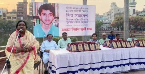 এভাবেই আজ বৃহস্পতিবার (৭ মার্চ) বিকেলে নারায়ণগঞ্জ শহরের শেখ রাসেল পার্কে আয়োজিত ত্বকী হত্যার ১১ বছর উপলক্ষ্যে শিশু সমাবেশ ও পুরস্কার বিতরণী অনুষ্ঠানে নারায়ণগঞ্জ সিটি কর্পোরেশনের মেয়র ডা. সেলিনা হায়াৎ আইভী উল্লেখিত মন্তব্য করেন।