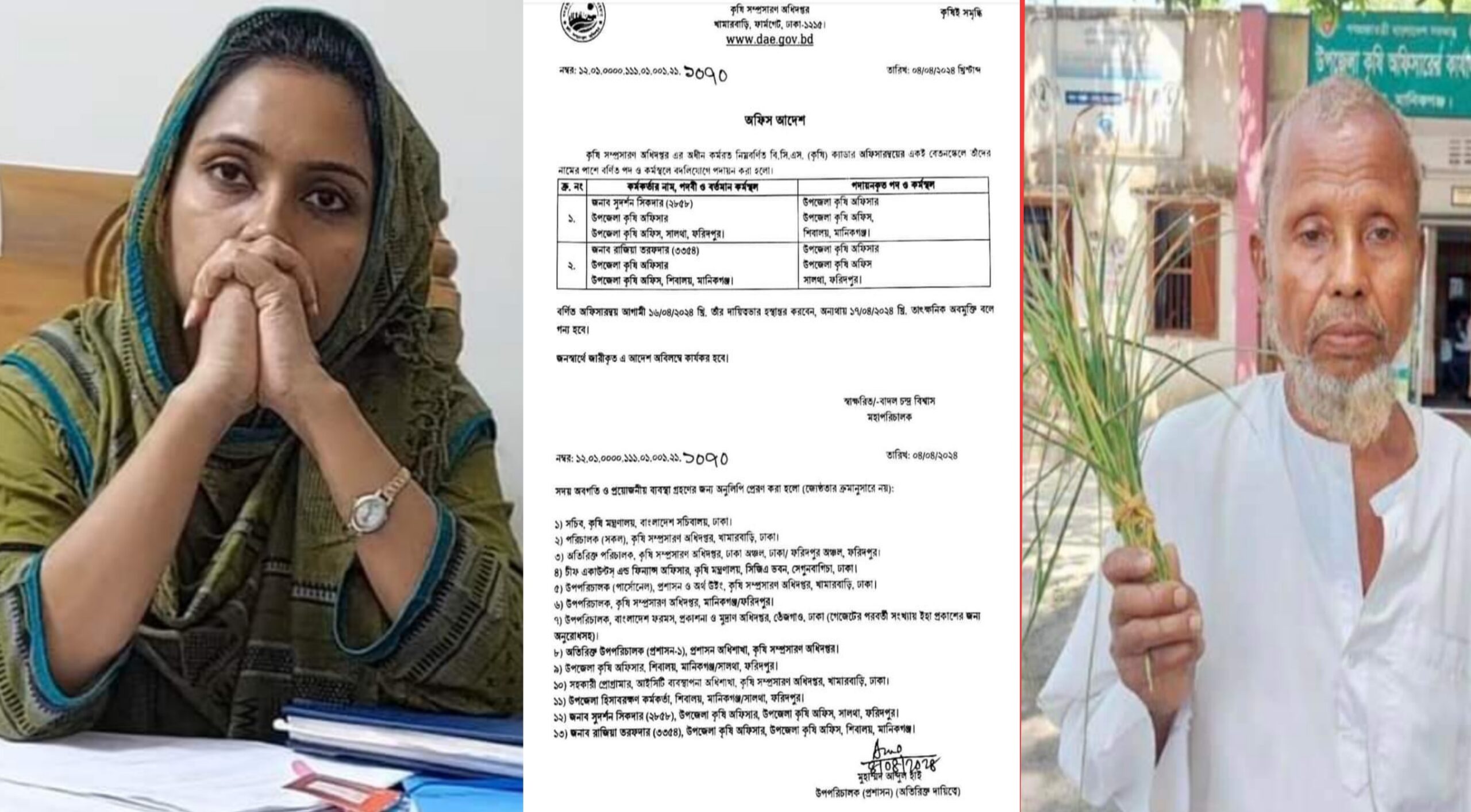 মানিকগঞ্জের শিবালয় উপজেলা কৃষি অফিসে ক্ষতিগ্রস্ত এক গুচ্ছ ধান নিয়ে পরামর্শের জন্য গেলে কৃষক ফজলুর রহমানকে বের করে দেওয়ার ঘটনায় অভিুযক্ত সেই উপ-সহকারী কৃষি কর্মকর্তা সালাহউদ্দিন সুজনকে মানিকগঞ্জে থেকে দিনাজপুর অঞ্চলে বদলির পর এবার উপজেলা কৃষি অফিসার রাজিয়া তরফদারকেও ফরিদপুরের সালথায় বদলি করা হয়েছে।