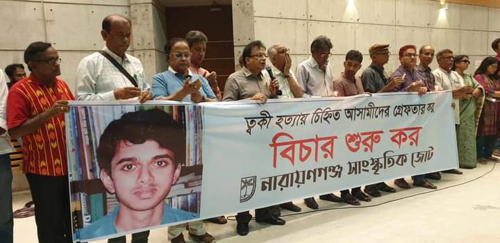 “ত্বকীর খুনিদের পোস্টার-ফেস্টুনে শহর ছেয়ে আছে। সরকার বারবার এ খুনিদের পুরস্কৃত করেছে। স্বীকারোক্তিমূলক জবানবন্দিতে নাম আসার পরও ত্বকীর খুনিদের গ্রেপ্তার করা হয়নি।”