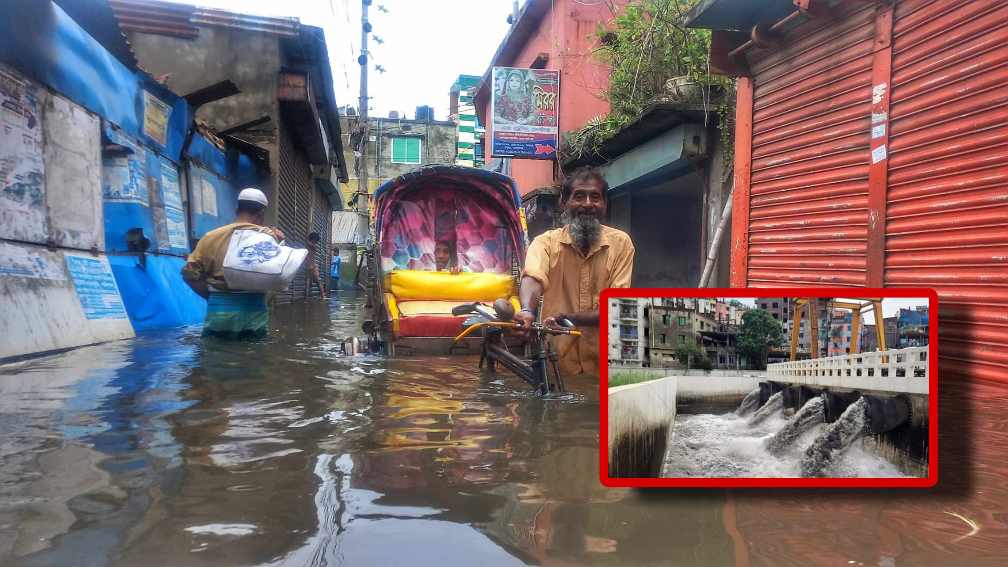 শিমরাইল পাম্প হাউজে সরেজমিনে গিয়ে দেখা যায়, পাম্পে ৩ দশমিক ৪০ মিটার পানির উচ্চতা রয়েছে যেখানে স্বাভাবিক ভাবে থাকে ২ দশমিক ৮০ মিটার। এ হিসাবে ডিএনডি এলাকা ২ ফুট পানির নিচে রয়েছে। পাম্প হাউজ সূত্রে জানা যায়, জলাবদ্ধতার পানি নিষ্কাশনের জন্য শিমরাইল ও আদমজী পাম্প হাউজের ১৩টি উচ্চ ক্ষমতা সম্পন্ন পাম্প এবং ফতুল্লা, কদমতলী ও শ্যামপুরের পাম্পিং প্লান্টের সকল পাম্প দিয়ে পানি নিষ্কাশন করছে। নাম প্রকাশ না করার শর্তে ডিএনডি প্রকল্পের এক উচ্চ পদস্থ সেনা কর্মকর্তা জানান, দুই পাম্প হাউজে পার সেকেন্ডে সাড়ে পাঁচ কিউবিক মিটার ক্ষমতা সম্পন্ন ১৩টি পাম্প চালুর পাশাপাশি ৩টি পাম্পিং প্লান্টের পাম্প চালু রয়েছে। দ্রুতই পানি কমে আসবে। তিনি ডিএনডিবাসীদের আতংকিত না হওয়ার পরামর্শ দিয়েছেন।
