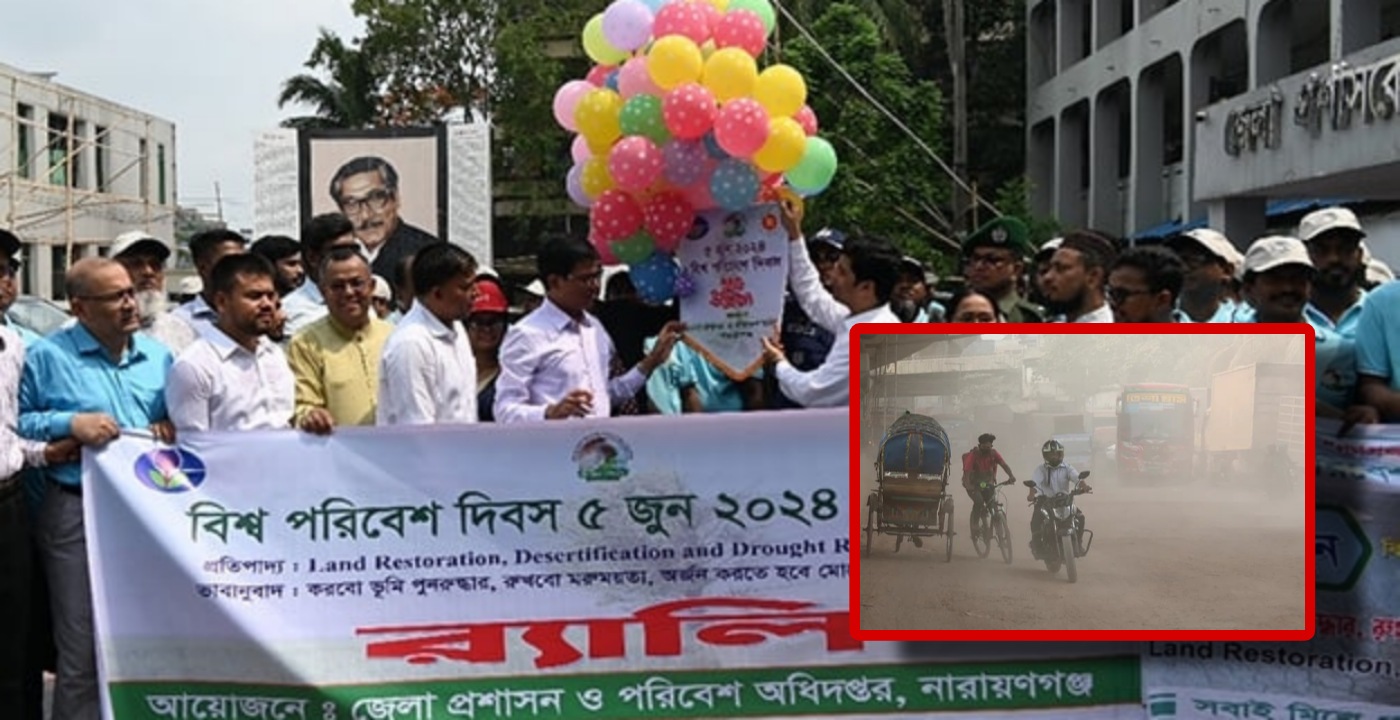 বায়ুদূষণে বিশ্বের ১০০টি শহরের মধ্যে আজ ৫ জুন বুধবার সকালে রাজধানী ঢাকার অবস্থান নবম। আর নারায়ণগঞ্জের অবস্তান অত্যান্ত মারাত্মক।