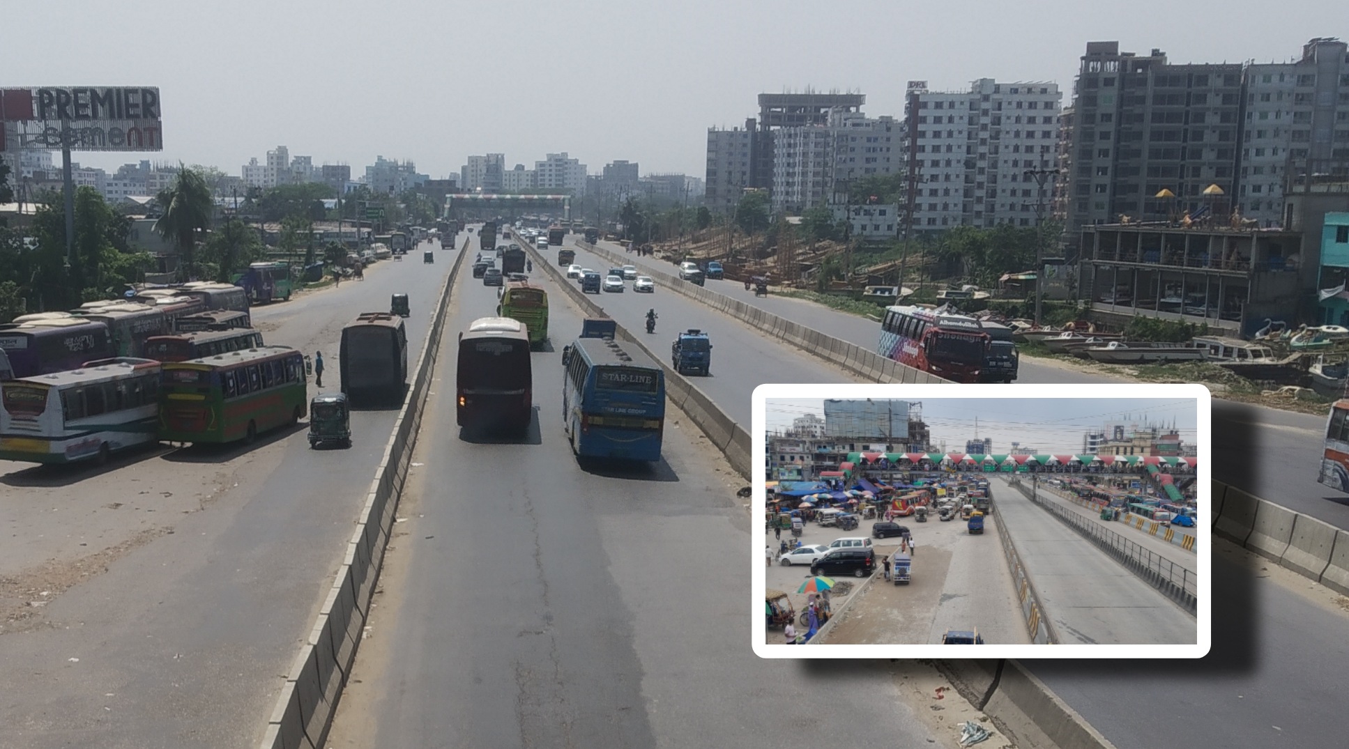 এদিকে, ঢাকা-মদনপুর বাইপাস (এশিয়ান হাইওয়ে) সড়কের নয়াপুর, বস্তল, ভূলতা ও ডেমরা স্টাফ কোয়ার্টার থেকে রূপগঞ্জের তারাব বিশ্বরোড পর্যন্ত যান চলাচল স্বাভাবিক রয়েছে।