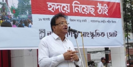 শুক্রবার (১৬ আগস্ট) বিকেলে শহীদ মিনারে সাংস্কৃতিক জোটের এক সাংস্কৃতিক সমাবেশে নারায়ণগঞ্জ সাংস্কৃতিক জোটের উপদেষ্টা ও সন্ত্রাস নির্মূল ত্বকী মঞ্চের আহ্বায়ক রফিউর রাব্বি উল্লেখিত মন্তব্য করেন।