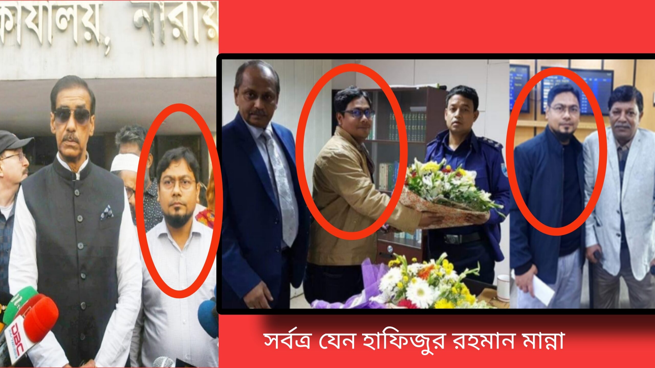 বরিশাল জেলার গৌরনদী উপজেলার সরিকলের সাকোকাঠী গ্রামের মরহুম আব্দুল মজিদ মোল্লার পুত্র এই হাফিজুর রহমান মান্না নারায়ণগঞ্জে প্রভাপ দেখিয়ে হাতিয়ে নিয়েছেন কোটি কোটি টাকা। নানা নামে বেণামে সরকারী অর্থ হাতিয়ে নেয়ার জোড় অভিযোগ থাকলেও কেউ মুখ খুলে কথা বলার সাহস করতো না। কারণ মহাধূর্ত এই হাফিজুর রহমান নারায়ণগঞ্জ- ৪ আসের সাংসদ একে এম শামীম ওসমান এমপির (একান্ত সচিব) পিএস।