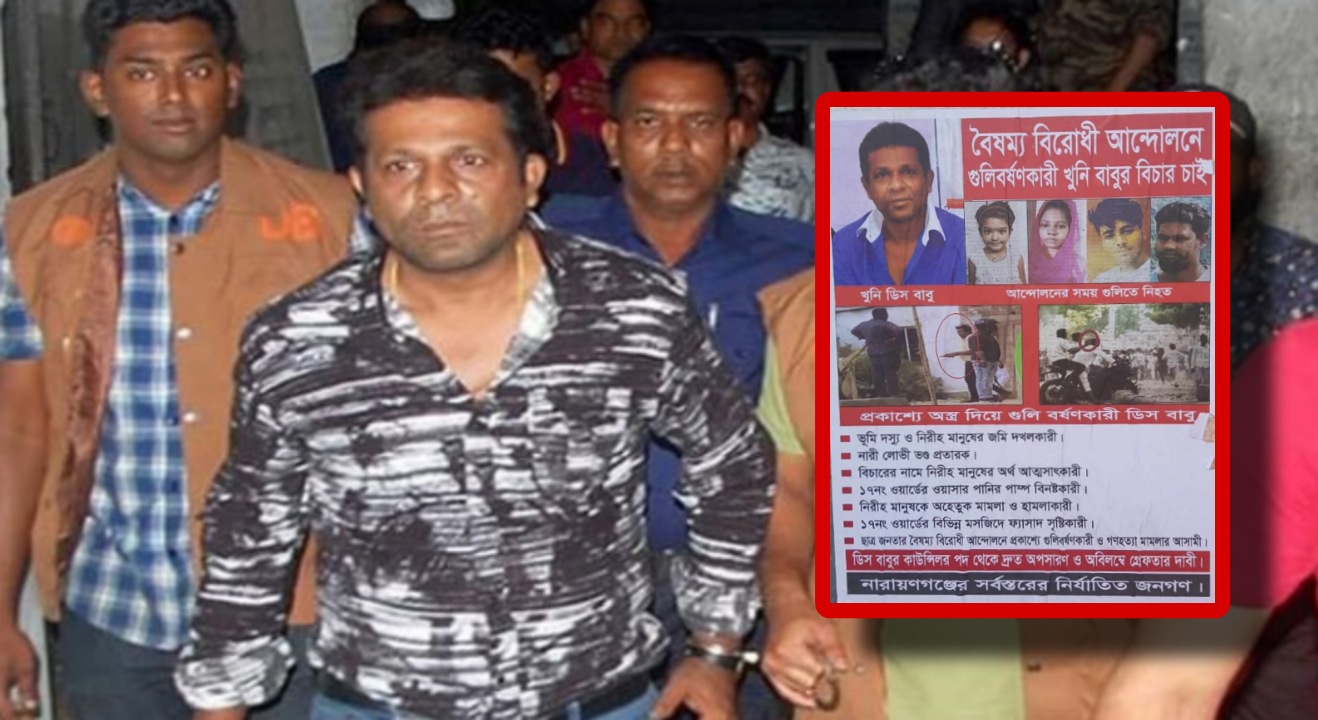 এসময় পোস্টারে বাবুর একাধিক ছবি দেখা গেছে। এসকল ছবিতে অস্ত্র হাতে নিয়ে মহড়া ও ছাত্র জনতাকে লক্ষ্য করে গুলি ছুড়তে দেখা গেছে বাবুকে।