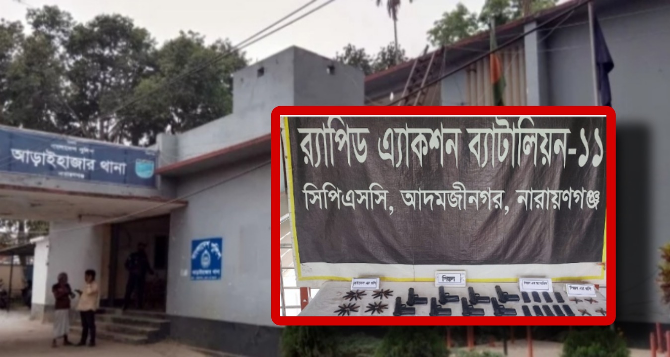 আড়াইহাজার থানা থেকে লুট হওয়া ৮টি পিস্তল, ৯টি ম্যাগাজিন ও ৫৫ রাউন্ড গুলি উদ্ধার করেছে র্যাব-১১।