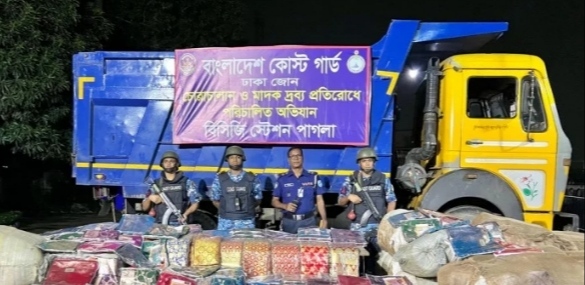 তিনি বলেন, গোপন সংবাদের ভিত্তিতে জানা যায় শুল্ক ফাঁকি দেওয়া অবৈধ বিপুল পরিমাণ ভারতীয় পণ্যের চালান নারায়ণগঞ্জ হয়ে ঢাকায় প্রবেশ করবে। প্রাপ্ত সংবাদের ভিত্তিতে ৩ অক্টোবর দুপুর ২টা থেকে বিকেল ৪টা পর্যন্ত বিসিজি স্টেশন পাগলা কর্তৃক নারায়ণগঞ্জ জেলার ফতুল্লা থানাধীন কুতুবপুর ইউনিয়নের আলীগঞ্জ এলাকায় একটি বিশেষ অভিযান পরিচালনা করা হয়। অভিযান পরিচালনাকালীন একটি পাথর বোঝাই ট্রাকের গতিবিধি সন্দেহজনক মনে হলে কোস্ট গার্ড কর্তৃক উক্ত ট্রাককে থামার সংকেত প্রদান করা হয়। ট্রাকটি না থেমে পালিয়ে যাওয়ার চেষ্টা করলে কোস্ট গার্ডের আভিযনিক দল ট্রাকটিকে ধাওয়া করে। কোস্ট গার্ডের উপস্থিতি টের পেয়ে ড্রাইভার ও সহোযোগী ট্রাকটি পরিত্যক্ত করে পালিয়ে যায়।