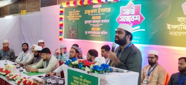 এভাবেই বাংলাদেশ ইসলামী ছাত্রশিবিরের কেন্দ্রীয় সভাপতি মঞ্জুরুল ইসলাম শনিবার (১২ অক্টোবর) ইসদাইরে কমিউনিটি সেন্টার ‘বাংলা ভবন’ এ নারায়ণগঞ্জ মহানগর ছাত্র শিবির আয়োজিত ‘সাথী সমাবেশে’ প্রধান অতিথির বক্তব্যে এসব কথা বলেন তিনি।