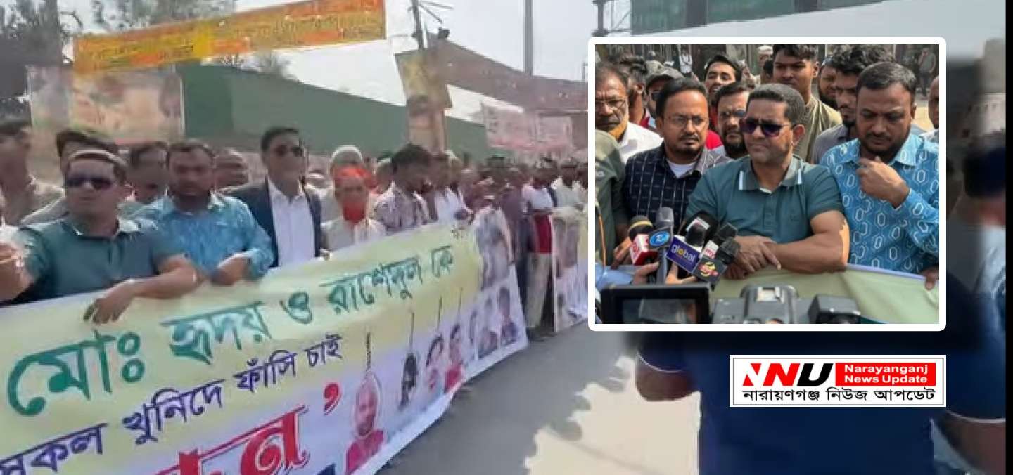 আজ শনিবার (৮ ফেব্রুয়ারি ) উপজেলার তারাবো হাঁটিপাড়া এলাকার ডেমরা-তারাবো বিশ্ব সড়কে এ মানববন্ধন ও বিক্ষোভ করে। স্বজন ও এলাকাবাসীর আয়োজিত মানববন্ধনে বক্তব্য রাখেন, নিহত রাশেদুলের মা নাজমা বেগম ও নিহত হৃদয়ের মা রোশেদা বেগম, তারাবো পৌর বিএনপি সভাপতি তাশিক হক ওসমান, তারাবো পৌর বিএনপি সাধারণ সম্পাদক হাফিজুর রহমান পিন্টু, তারাবো পৌর যুবদলের আহ্বায়ক আফজাল কবিরসহ প্রমূখ।