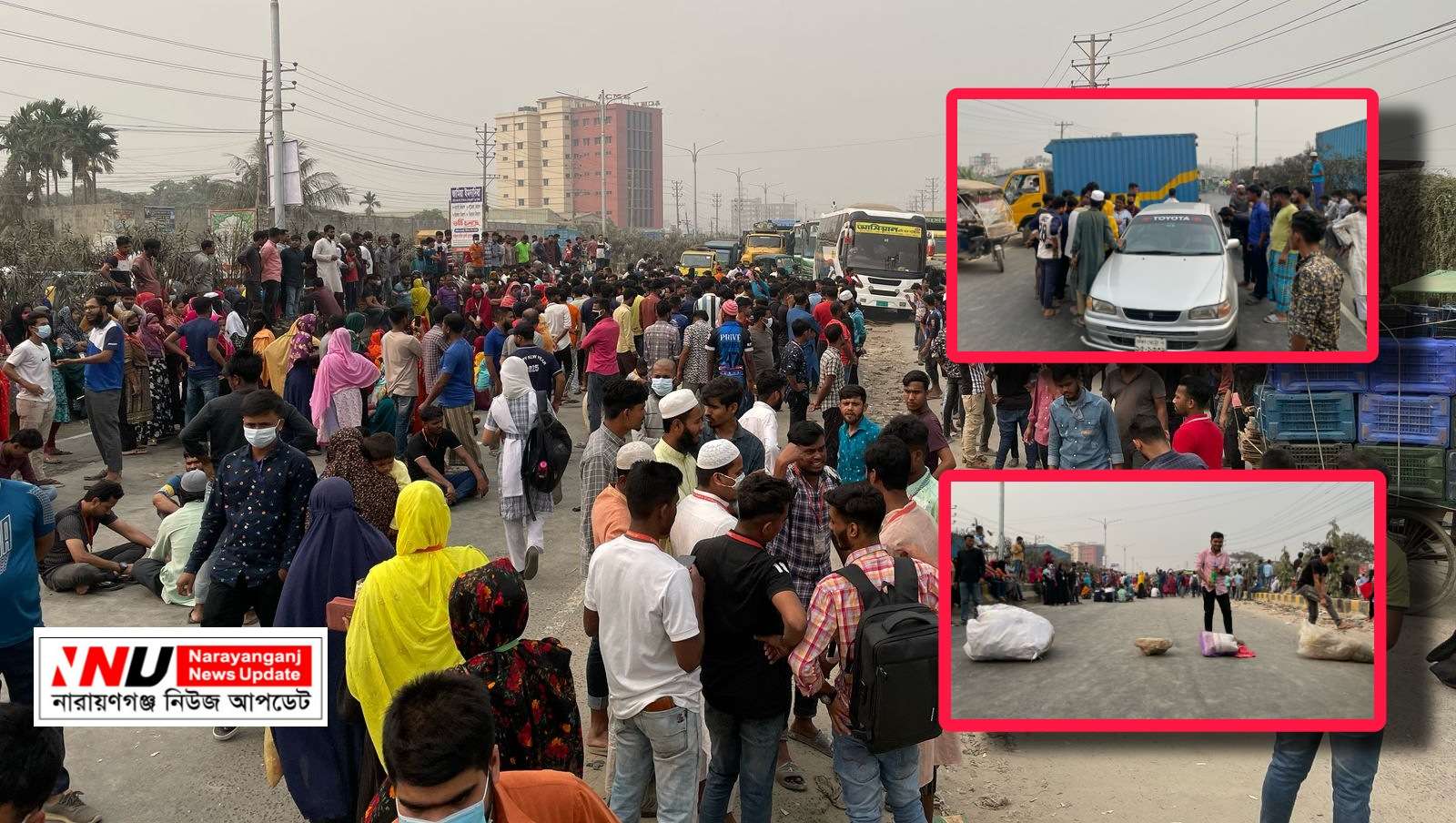 আজ বুধবার (১৯ ফেব্রুয়ারি) দুপুর ১টা থেকে বিকেল সাড়ে ৫টা পর্যন্ত ঢাকা-নারায়ণগঞ্জ সংযোগ সড়কের লামাপাড়া এলাকায় সড়ক অবরোধ করে শত শত শ্রমিক। এই রিপোর্ট লেখা পর্যন্ত এখনো সড়ক অবরোধ চলছে।