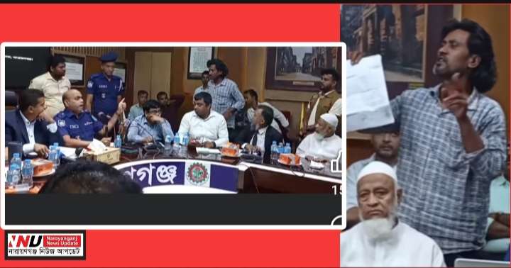 নারায়ণগঞ্জ জেলা প্রশাসনের আয়োজিত নগরীর যানজট নিরসনকল্পে আইনশৃঙ্খলা সভায় সম্মেলনে কক্ষ থেকে এক চাঁদাবাজকে আটক করা হয়েছে।