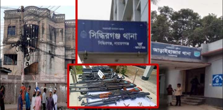 গত ৫ আগস্ট ফ্যাসিস্ট শেখ হাসিনা সরকারের পতনের দিন নারায়ণগঞ্জে দুটি থানা থেকে অস্ত্র-গোলাবারুদ লুট করে আগুন দেয় দুর্বৃত্তরা। থানা দুটি হচ্ছে আড়াইহাজার ও সিদ্ধিরগঞ্জ। দুটি থানার বেশির ভাগ অস্ত্র লুট হয়ে যায়। এসব অস্ত্র কাদের হাতে চলে গেছে, তা নিয়ে উদ্বেগ ও উৎকণ্ঠায় রয়েছেন খোদ আইনশৃঙ্খলা বাহিনীর কর্মকর্তারা। আইনশৃঙ্খলা বাহিনীর দাবি, পুলিশের লুট হওয়া অস্ত্রসহ অবৈধ অস্ত্র উদ্ধারে জোর তৎপরতা চালাচ্ছেন র্যাব, পুলিশসহ যৌথ বাহিনীর সদস্যরা।