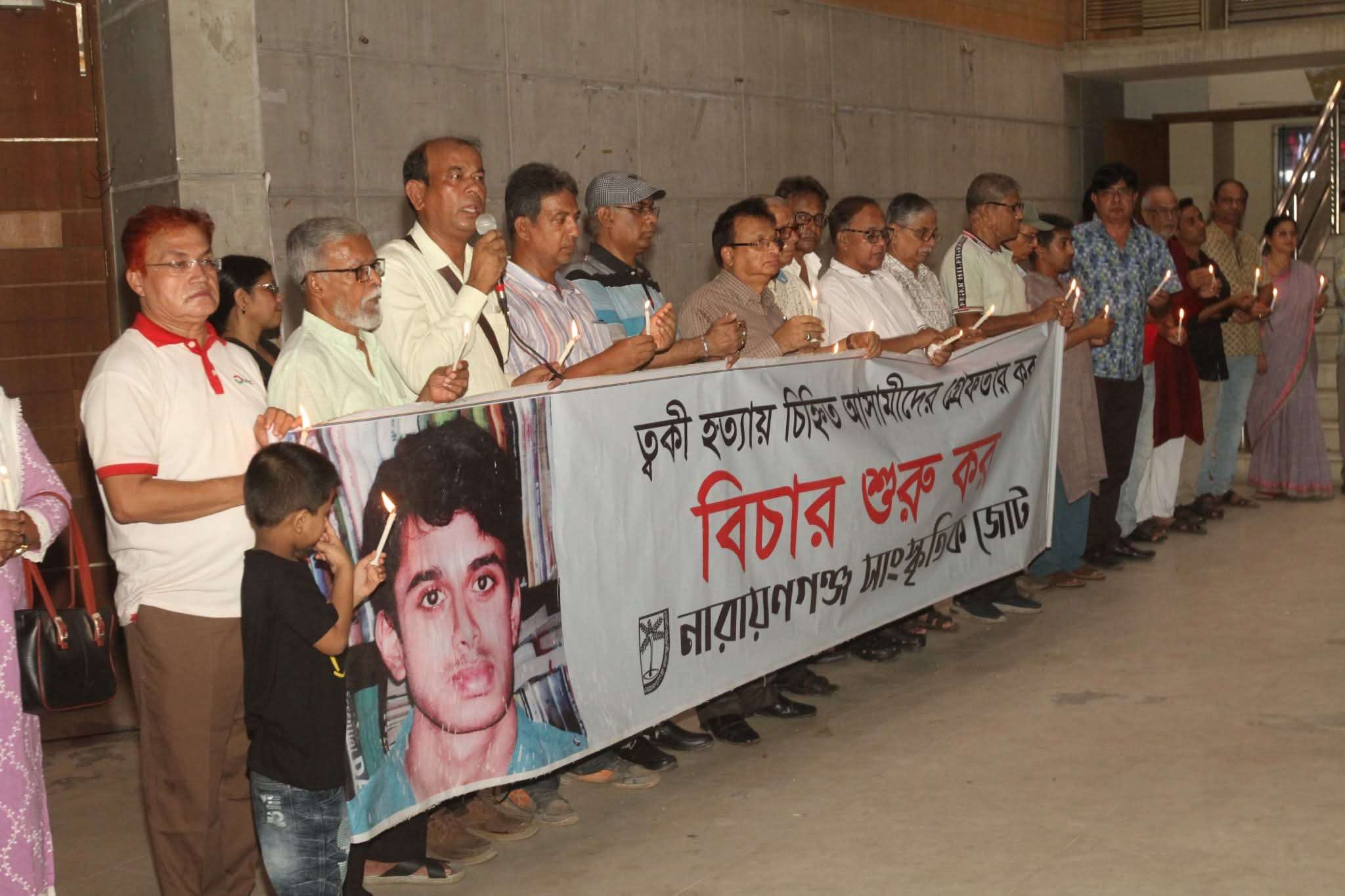 তানভীর মুহাম্মদ ত্বকী হত্যা ও বিচারহীনতার ১৫১ মাস উপলক্ষে আলোক প্রজ্বালন কর্মসূচি পালন করেছে নারায়ণগঞ্জ সাংস্কৃতিক জোট।