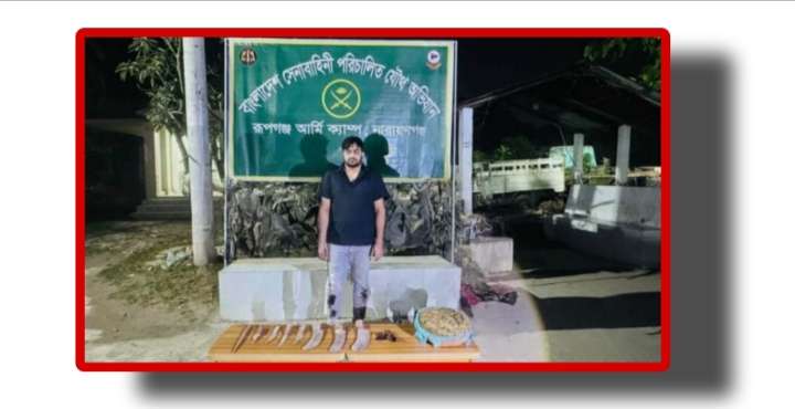 নারায়ণগঞ্জের রূপগঞ্জ উপজেলার মুড়াপাড়া ইউনিয়নের মাছিমপুর এলাকায় সেনাবাহিনীর বিশেষ অভিযানে বিপুল পরিমাণ দেশীয় অস্ত্র ও মাদকদ্রব্য উদ্ধার করা হয়েছে।