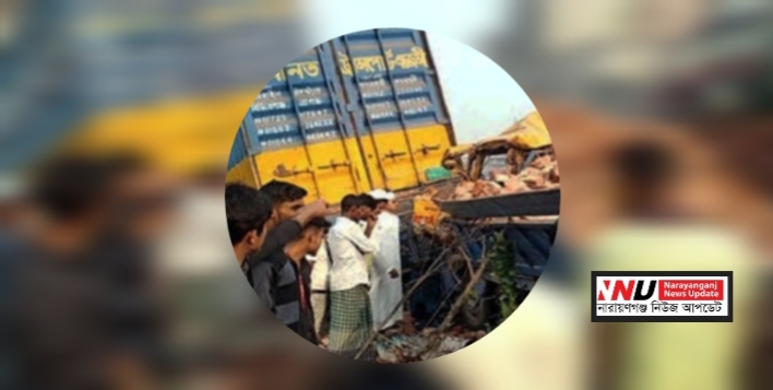 এ সময় দ্রুতগতিতে আসা এন.এস. বিল্ডার্সের একটি ইটবাহী মিনি ট্রাক (ঢাকা মেট্রো-ড-১৪-৫৬৯৯) নিয়ন্ত্রণ হারিয়ে কাভার্ডভ্যানটির পেছনে সজোরে ধাক্কা দেয়।