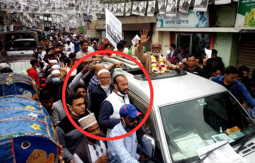 শুক্রবার (১৪ জানুয়ারি) বিকেলে বন্দরে তার প্রচারণায় অংশ নেন মুছাপুর ইউনিয়ন পরিষদের চেয়ারম্যান রাজাকারপুত্র মাকসুদ হোসেন। জাতীয় পার্টির এই নেতা নারায়ণগঞ্জর ওসমান পরিবারের অত্যান্ত ঘনিষ্ঠজন বলে পরিচিত।